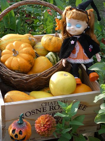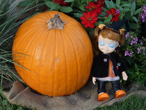 今日のお供は、ハロウィンのおめかしをしたジョージーナでした。 |