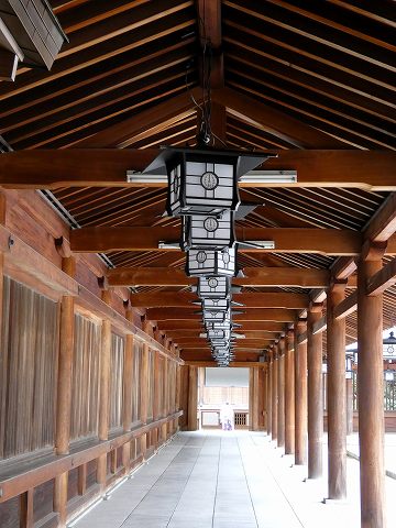 渡り廊下屋根と梁と柱と吊り灯籠