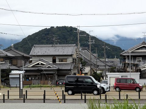 | 家並みの背後に姿をあらわします。麓には神武天皇御陵や橿原神宮が明治以降に造営され、神宮鳥居前には参拝者相手の商店が連なり、大和三山の中で最も賑やかな街が隣接します。 |