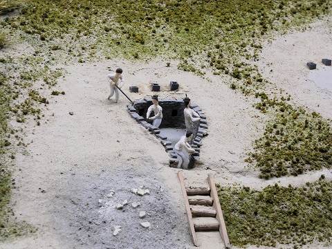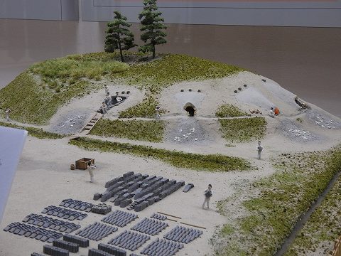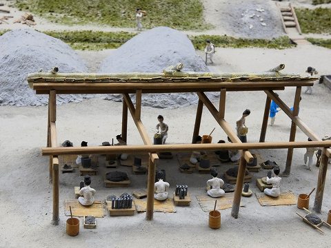 壺や瓦などを成形・焼成していた工房のジオラマです。