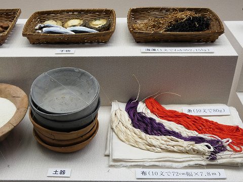 | これらの品々は、「調」(地方の特産物や、布、糸などを収める税種目)として納品されたもの。 |