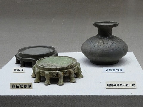 | 藤原京に王都が置かれた頃、国交の再開をもとめ新羅使が来日、藤原京も訪れています。これらの発掘品は新羅使のもたらしたものとも考えられます。それにしても重厚な硯(すずり)台です。 |