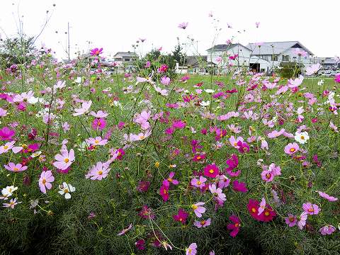 | 本日は、藤原宮跡地近くの畑地で、コスモス祭が開催されており、鑑賞に訪れた人々が憩うスペースが設けられています。 |