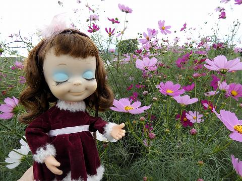 今日のお供のスザナも、コスモスを前にゴキゲンです