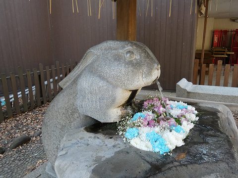 手水はウサギの口から出ています。