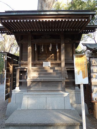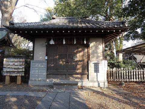 | 社殿は調神社旧本殿。平成29年の修理が完了。屋根を銅板葺から柿葺きに戻した。さいたま市指定文化財。 |