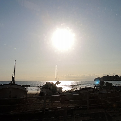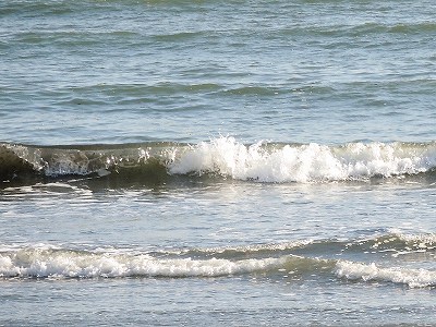 先ほどは店内から、望遠ズームで海の様子を撮りましたが、今はお店を後にして、海岸通りから太陽と波を切り撮ってみました。