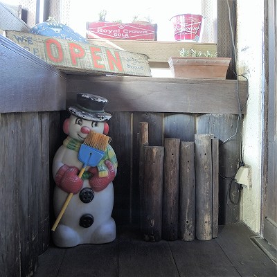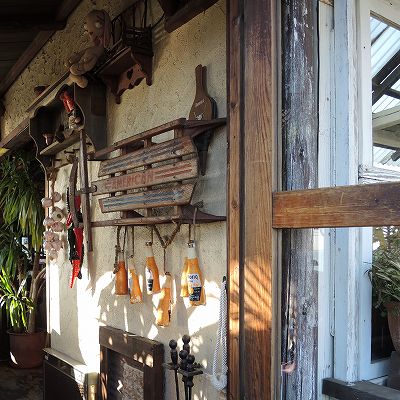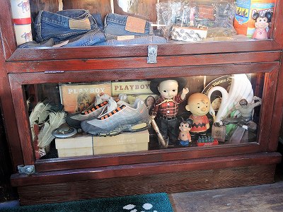 ヴィンテージ物が詰め込まれた飾り棚