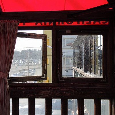 赤い幌の別室がありました。撮ったつもりが、切れてました。 カフェレストランは2Fです。