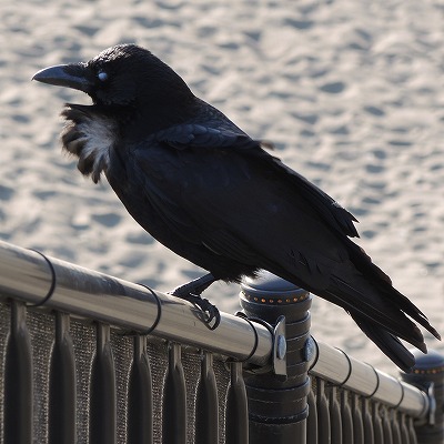 カラスの喉に素敵な飾りが見えます。