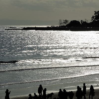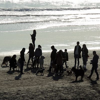 ワンちゃんを連れてのオフ会でしょうか、浜辺で集っていました。 |