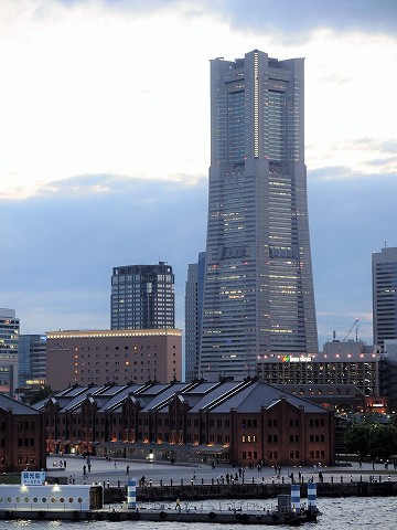大桟橋から見えたみなとみらいの夕景。