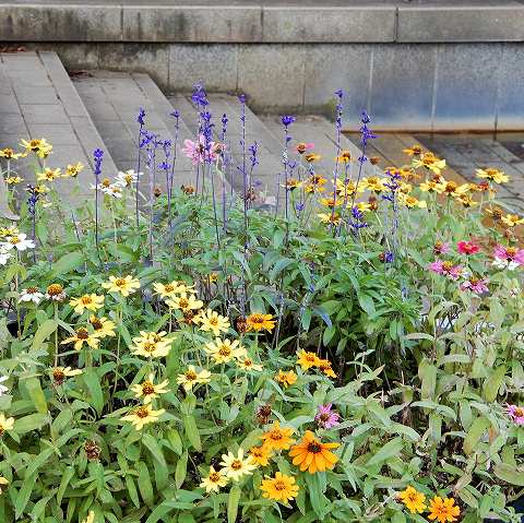 ジニア、ラベンダー、コスモス